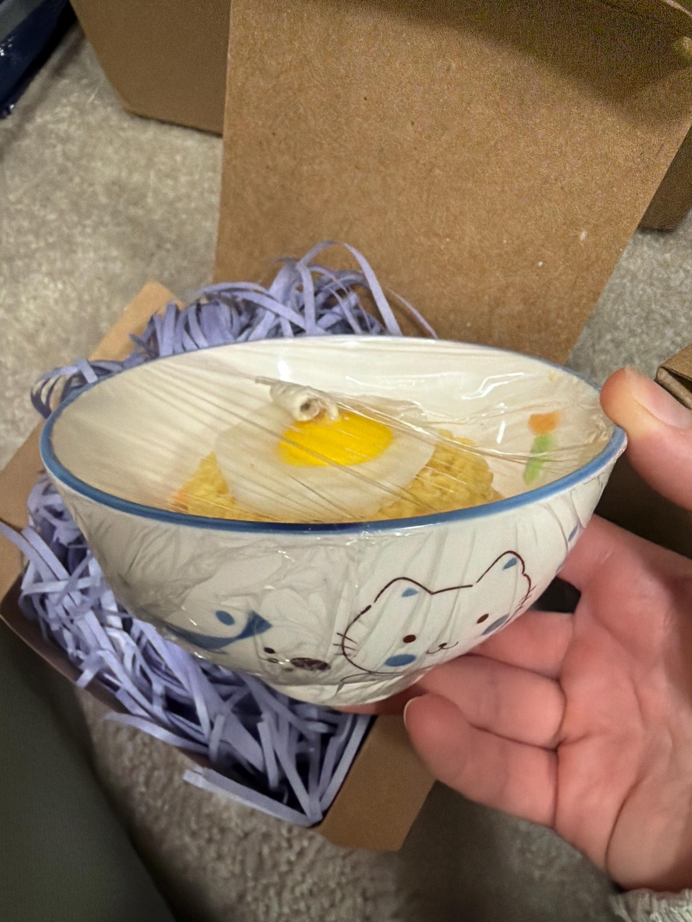 Came in really fast, the bowl is like actually a REAL bowl. Egg made it intact. This is so freaking cute, my husband is going to love it.